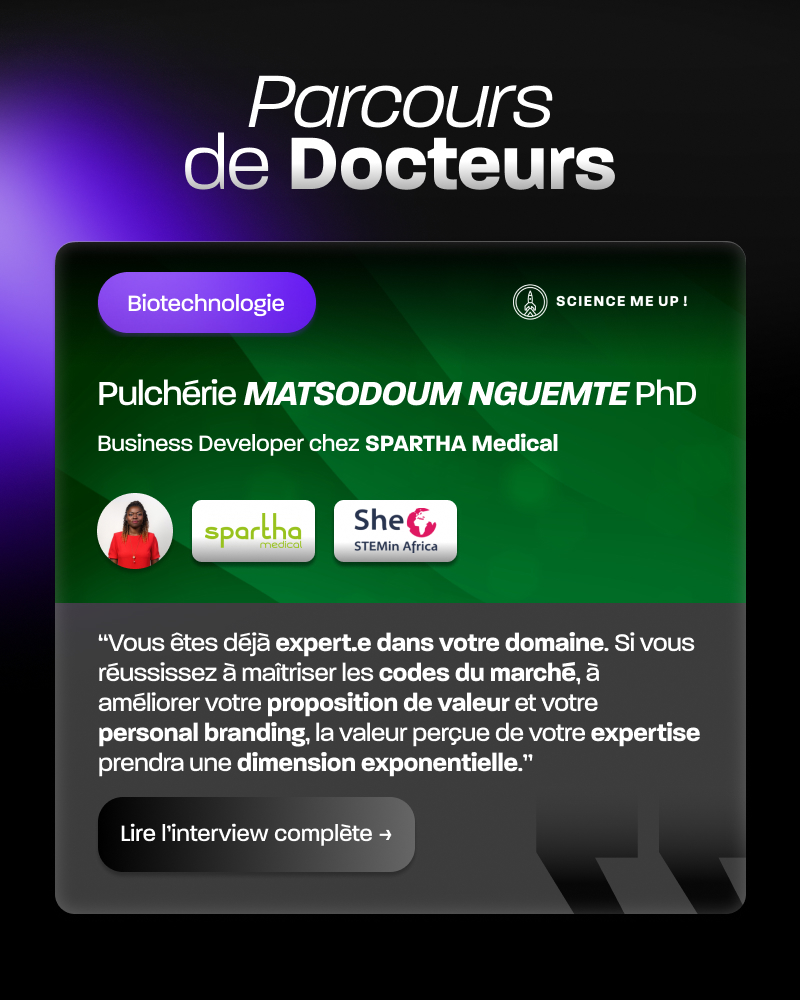 De la Recherche au business development, Pulchérie nous partage son parcours inspirant, ses conseils pour valoriser concrètement la recherche et son engagement pour les femmes STEM à travers l’association She STEMin Africa.